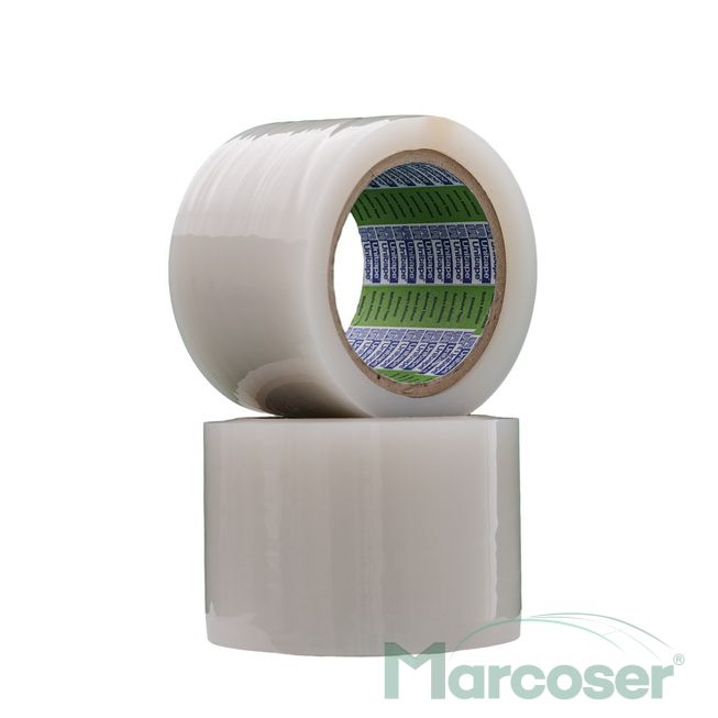 Rola este alba transparenta si are 75 mm latime cu 25 m lungime sau 150 mm latime cu 25 m lungime.