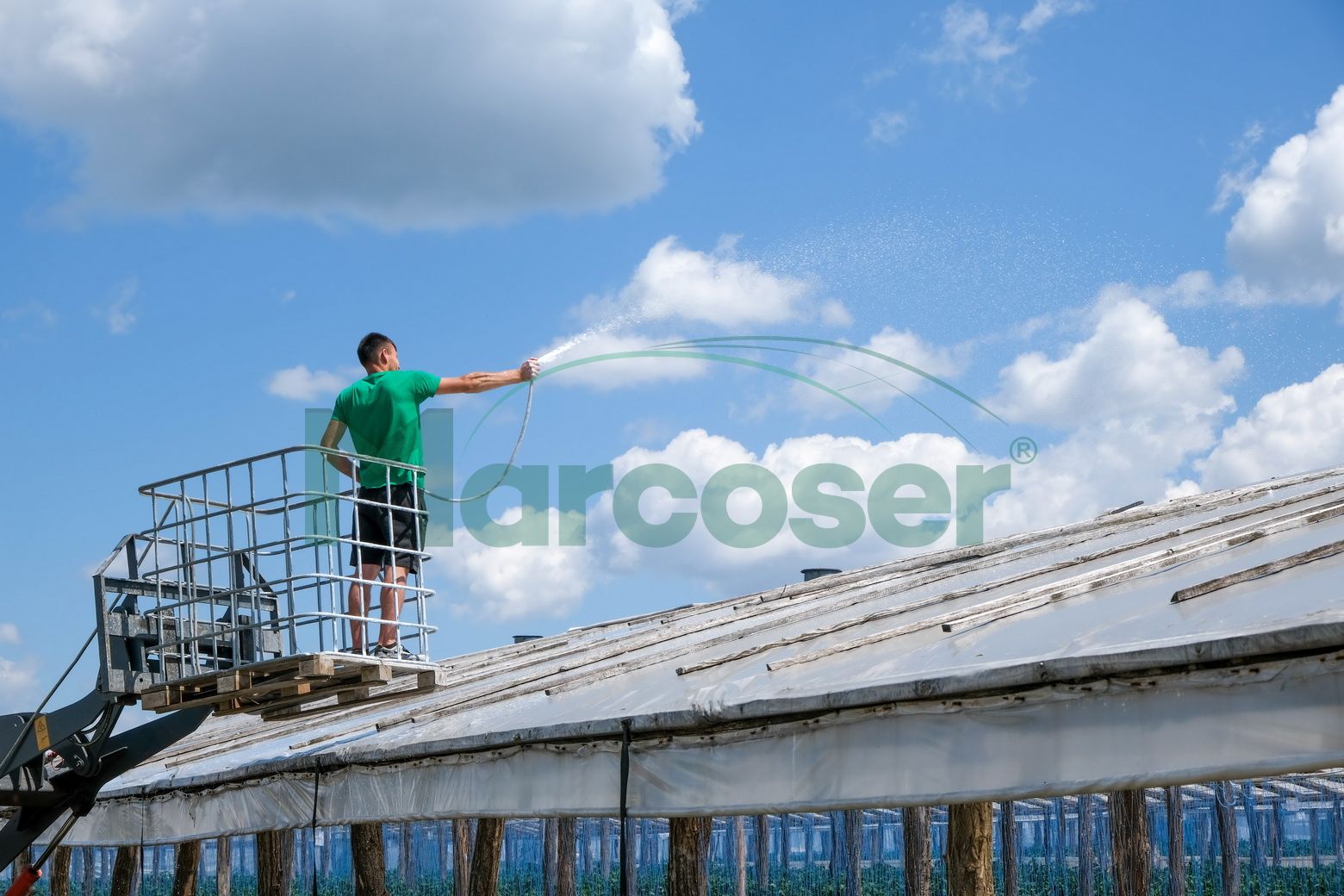 Produsul Witvast se aplica prin stropire directa pe folia de acoperire, pe partea exterioara a solarului. Aceasta solutie de umbrire nu afecteaza durata de viata a foliei pe termen lung sau elementele de fixare ale acesteia.