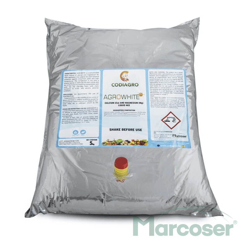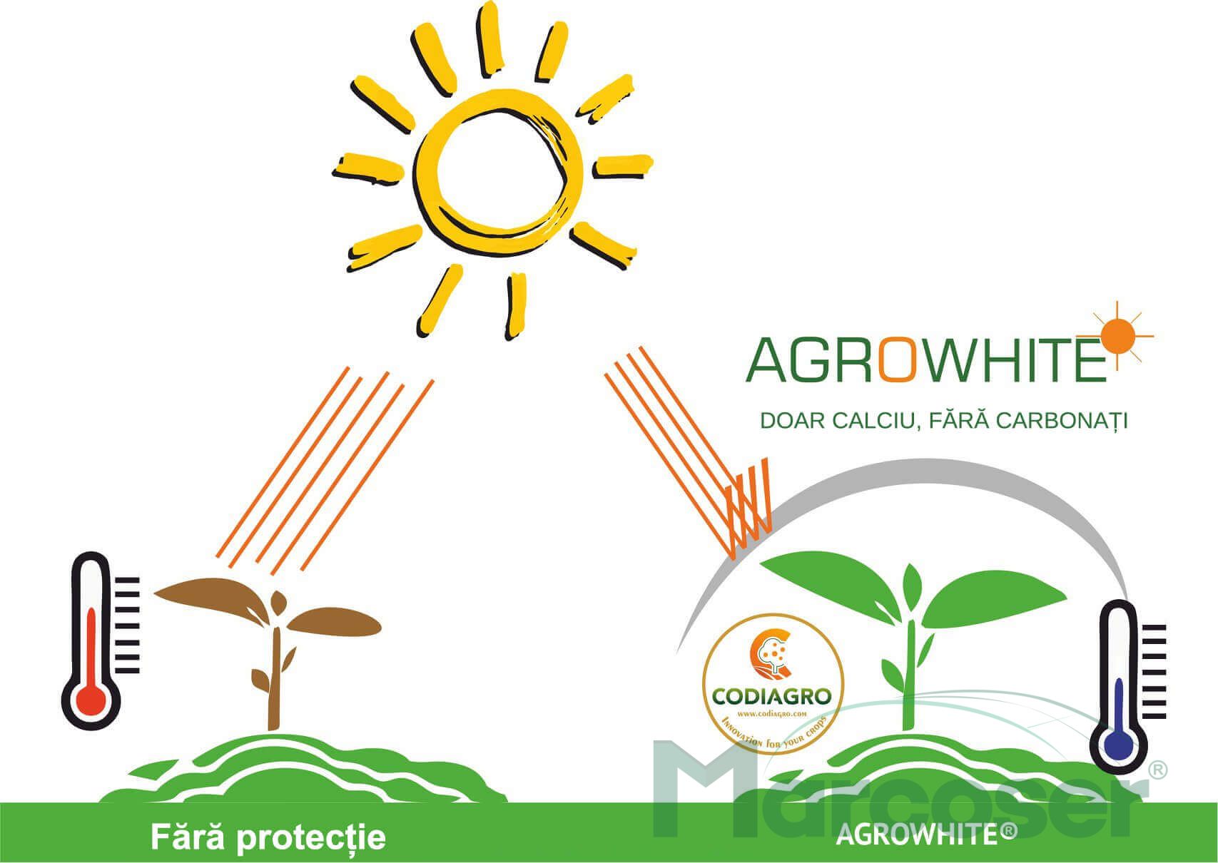 Agrowhite este un amestec concentrat lichid de calciu si magneziu, ce se aplica pentru pastrarea si cresterea stabilitatii cuticulei frunzelor si fructelor in conditii adverse (arsuri solare, stres hidric etc.). In perioadele caniculare, protejeaza fructele de arsuri solare si creste rezistenta acestora dupa recoltare.