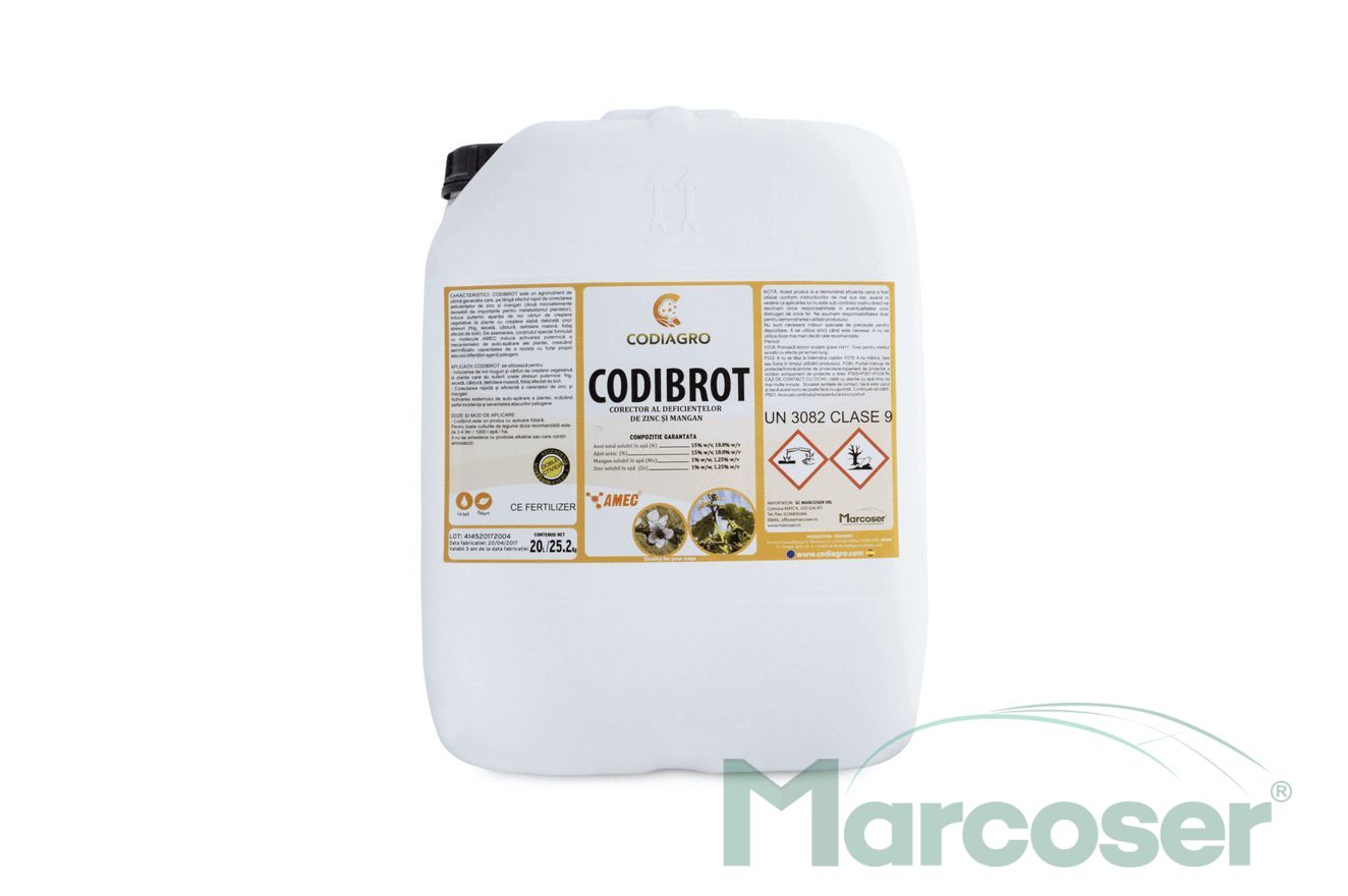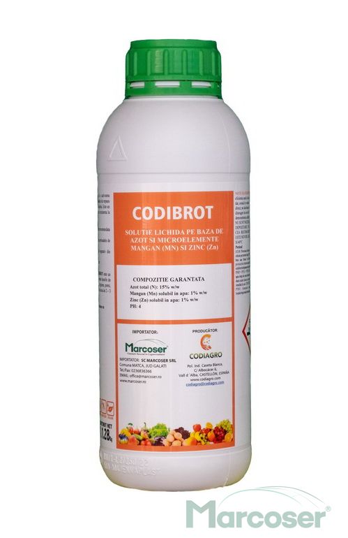 Codibrot este un agronutrient de ultima generatie ce se utilizeaza pentru inducerea de noi muguri si varfuri de crestere vegetativa la plantele care au suferit unele stresuri puternice, corectarea rapida si eficienta a carentelor de zinc si mangan si pentru activarea sistemului de auto-aparare a plantei.