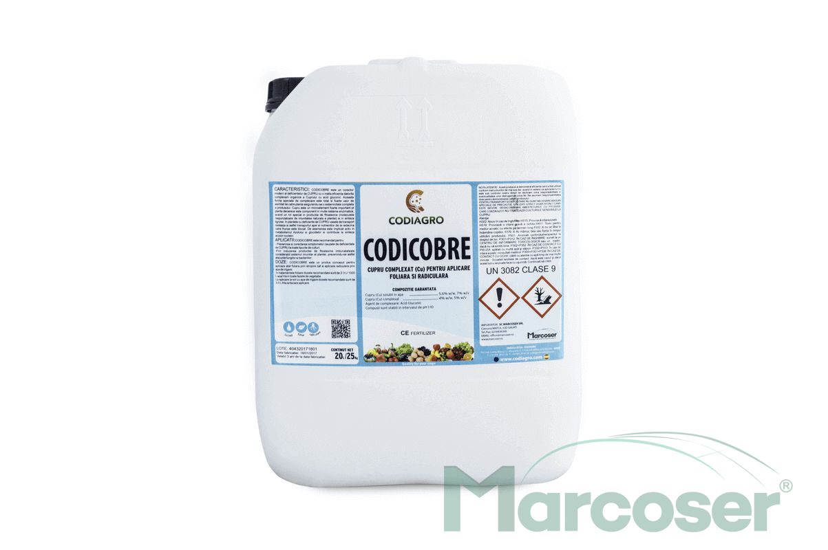 Codicobre este un ingrasamant pe baza de cupru recomandat la toate culturile pentru prevenirea si corectarea simptomelor cauzate de deficientele de cupru. Totodata, Codicobre imbunatateste sistemele de autoaparare ale plantelor.
