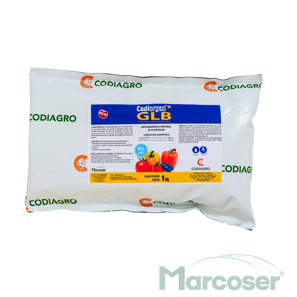 Codiorgan-GLB este un produs bazat pe aminoacizi liberi, de sinteza si biologici, ce este recomandat pentru stimularea activitatii plantei in momente de stres, imbunatatirea legarii fructelor in conditii mai putin prielnice, prevenirea craparii fructelor cauzata de dezechilibre osmotice si pentru protectie impotriva temperaturilor extreme.