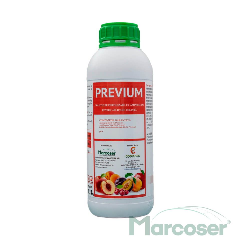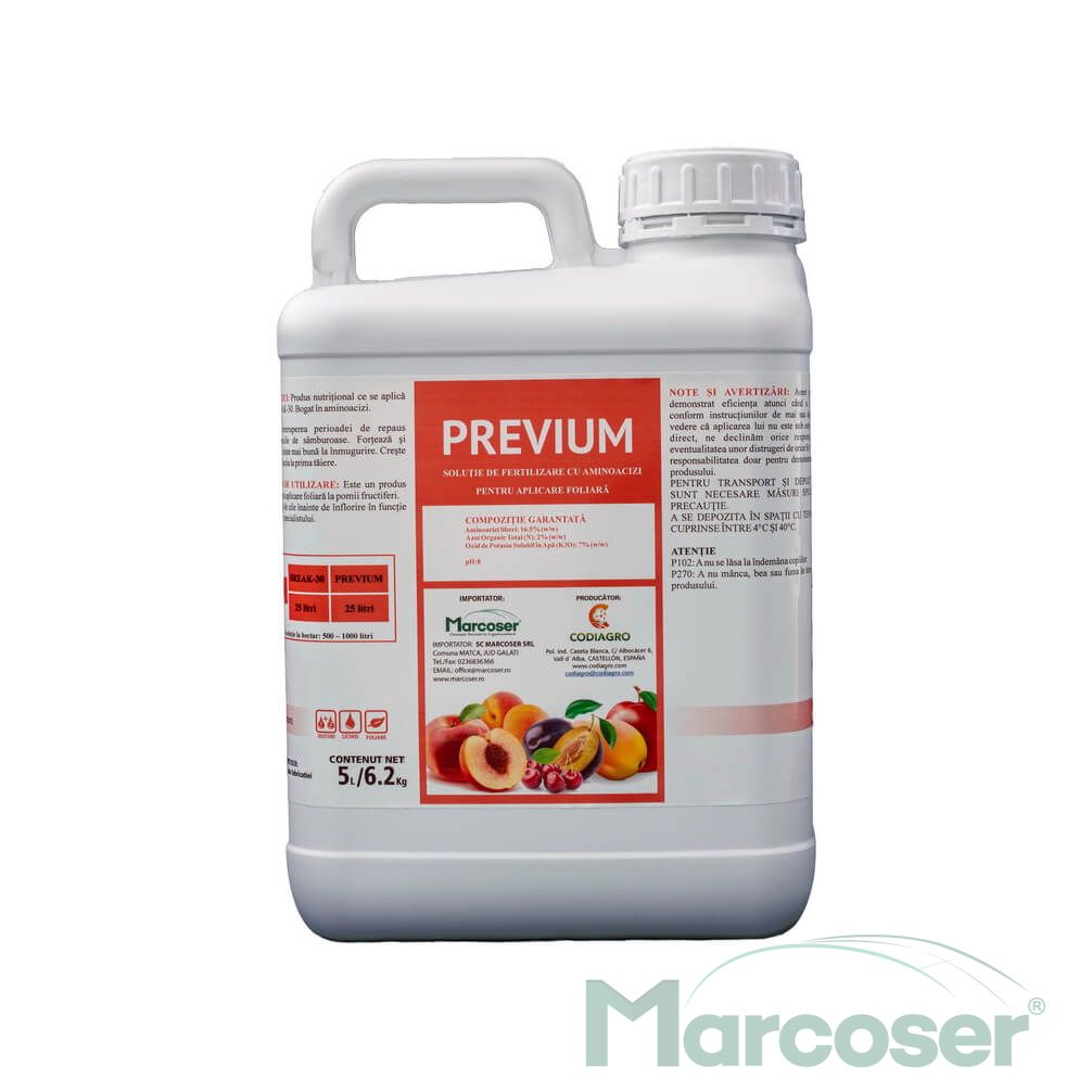 PREVIUM este un produs nutritional (ingrasamant) bogat in aminoacizi, special creat pentru aplicare foliara la pomii fructiferi cu 35-40 de zile inainte de inflorire.