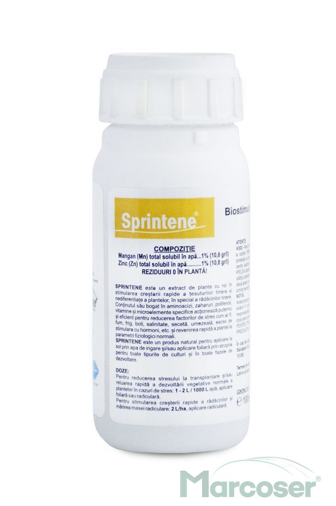 Sprintene este un stimulator de crestere al radacinilor plantelor tinere sau a plantelor aflate in orice faza de crestere. Se aplica pentru stimularea radacinilor, marind puternic masa radiculara si stimularea puternica a metabolismului, pentru revenirea rapida a plantelor din stres.