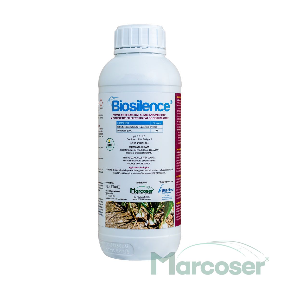 Biosilence este o solutie pe baza de extract natural din Coada Calului (Equisetum arvense), cu un continut ridicat de acizi organici (silicic, oxalic, galic, etc.), taninuri si saruri de potasiu cu actiune de contact si penetranta care imbunatateste tesuturile si structurile de suport ale plantei.