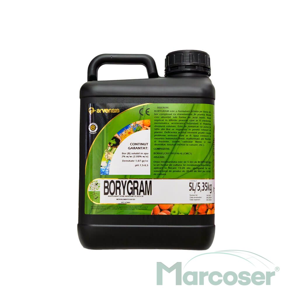 Borygram este un ingrasamant lichid pe baza de bor complexat cu etanolamina, care ajuta plantele in cazul deficientei de bor