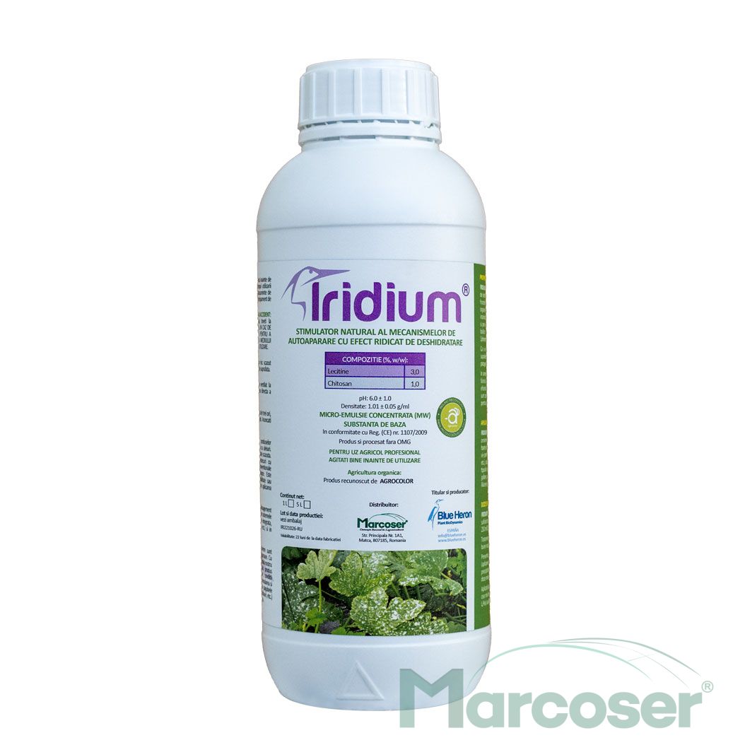 Iridium este o solutie emulsionabila care aplicata la nivelul frunzelor creaza un bio-film alcatuit din lipide naturale care acopera organele plantei si activeaza mecanismele de autoaparare ale plantei, intarind peretii celulari din frunze si fructe.