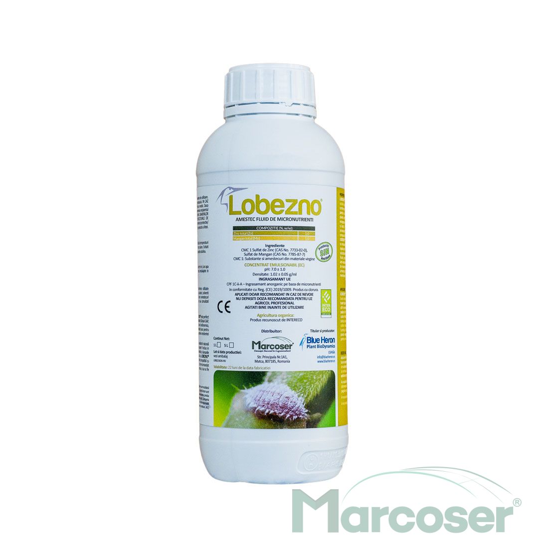 Vezi descriereLobezno este un ingrasamant cu proprietati de intarire care contine Zinc solubil in apa si saruri de Mangan (sub forma Zn2+ si Mn2+). Preintampina diferite tipuri de stres abiotic si biotic, in principal legate de pagube cauzate de insecte daunatoare, provocand o crestere a nivelurilor de polifenoli, fitoalexine si alti compusi de aparare din plante.