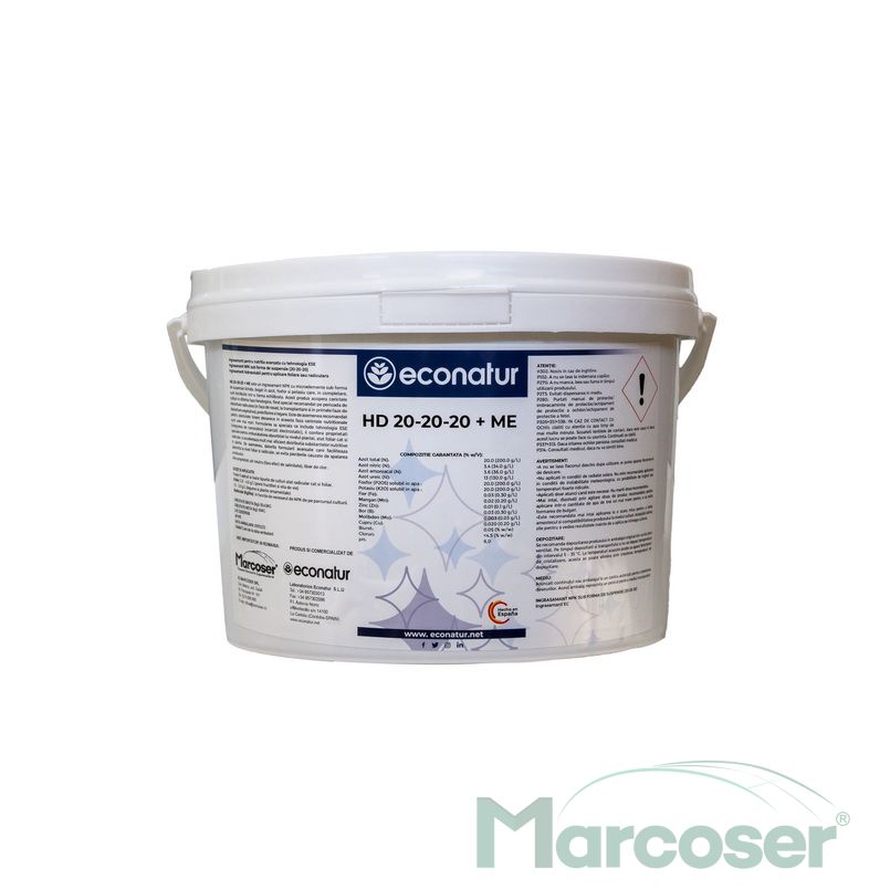 Econatur HD 20:20:20 + ME este un ingrasamant NPK cu microelemente sub forma de suspensie concentrata, bogata in azot, fosfor si potasiu, indicat pe timpul fazei de dezvoltare radiculara, preinflorire si legare