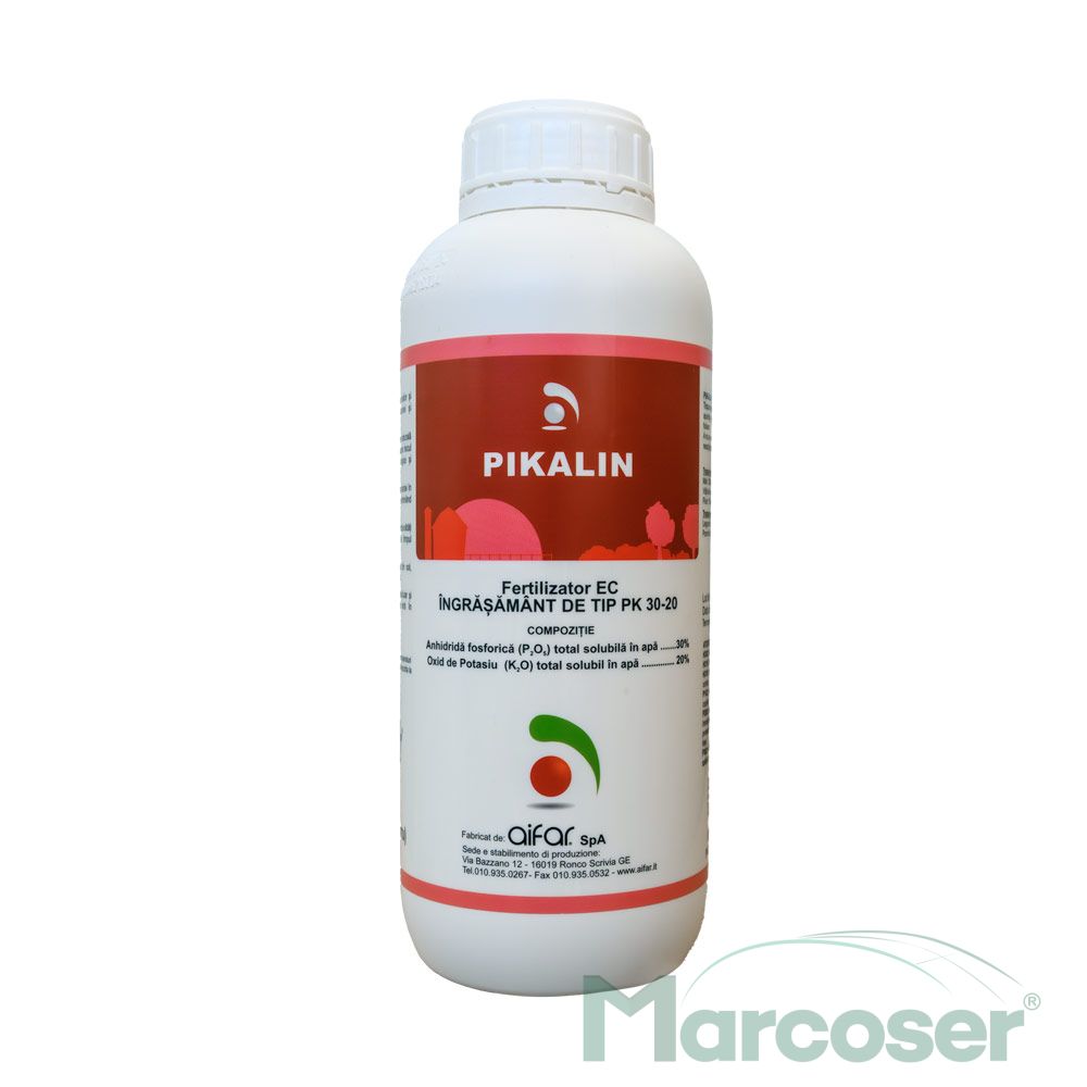 Pikalin este o solutie nutritiva bogata in fosfor si potasiu, ce stimuleaza sistemul de aparare naturala al plantei pentru lupta impotriva agentilor patogeni, scazand riscul de aparitie a bolilor (in special impotriva infectiilor fungice si bacteriene). Imbunatateste marimea si calitatea fructelor si buna desfasurare a functiilor fiziologice.