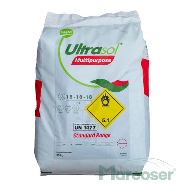 Ultrasol 18:18:18 contine o cantitate mai mare de azot nitric decat azotul de amoniu, oferind sursele optime de azot pentru un raspuns rapid al plantei.