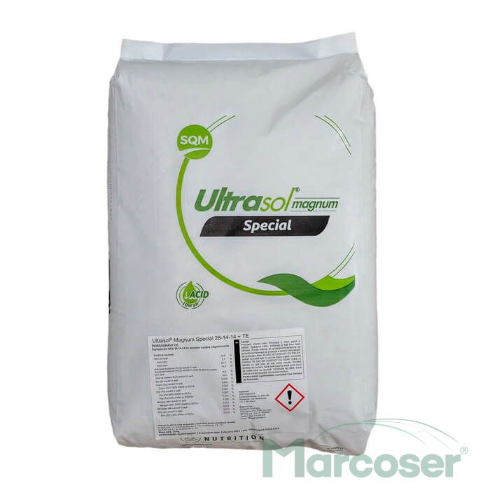 Ultrasol Magnum Special 28:14:14 este un ingrasamant NPK cu raport 2:1:1, care confera o absorbtie imbunatatita a nutrientilor in conditii alcaline.