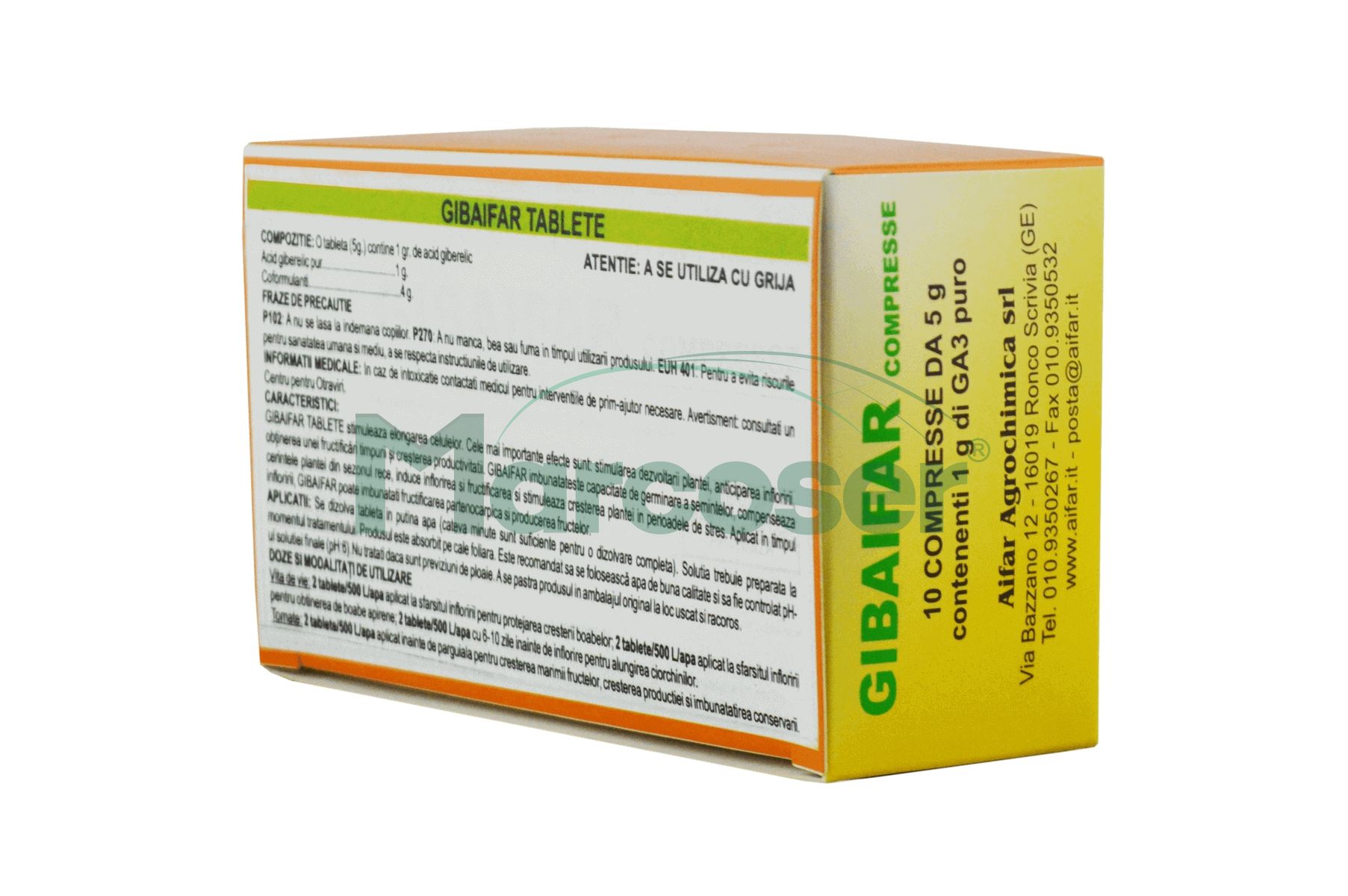Gibaifar este un fitoregulator de crestere ce stimuleaza alungirea celulelor, stimuleaza dezvoltarea plantei, inflorirea timpurie, obtinerea unei fructificari timpurii si cresterea productivitatii. GIBAIFAR imbunatateste germinarea semintelor, compenseaza cerintele plantei din sezonul rece, induce inflorirea si fructificarea timpurie si stimuleaza cresterea plantei in perioadele de stres.