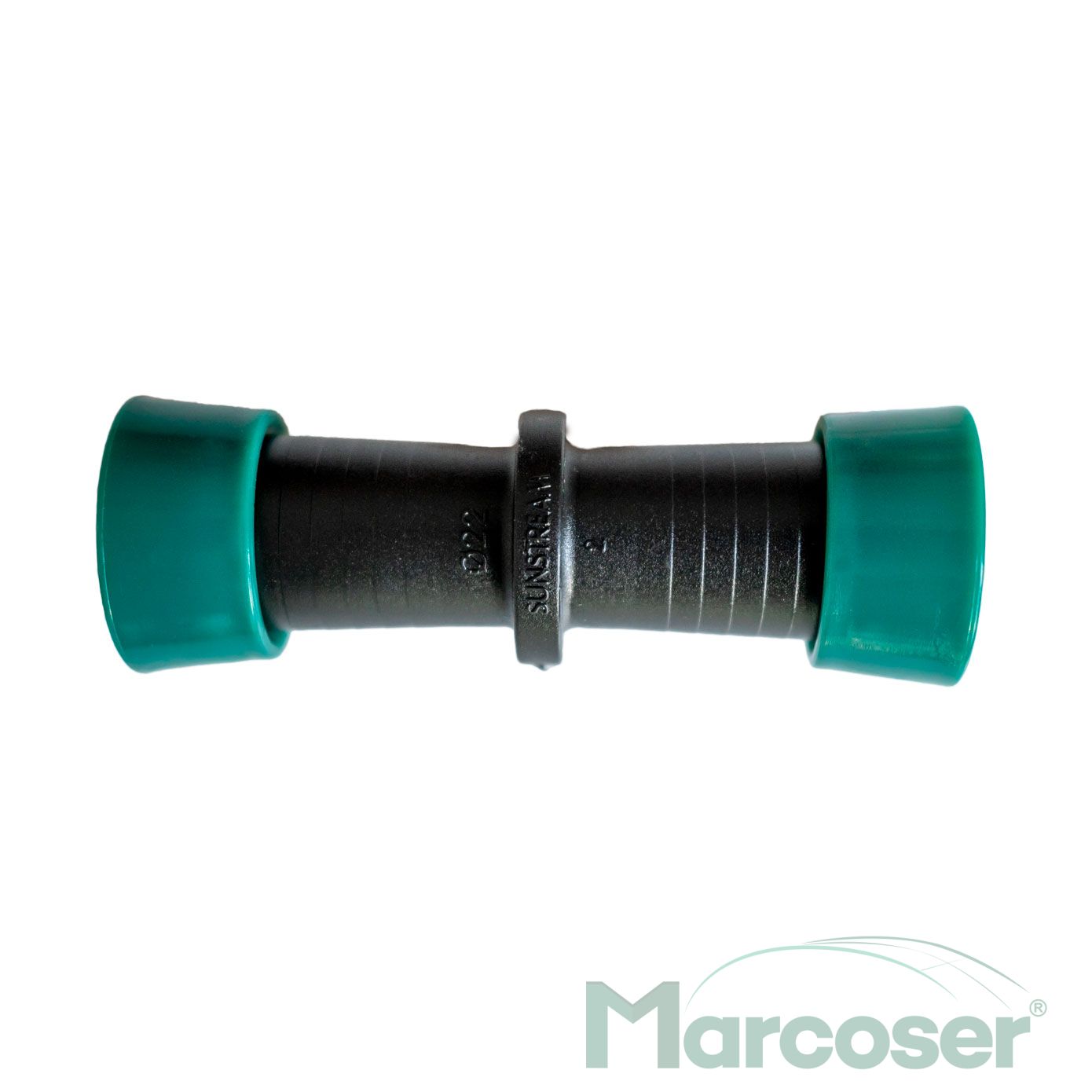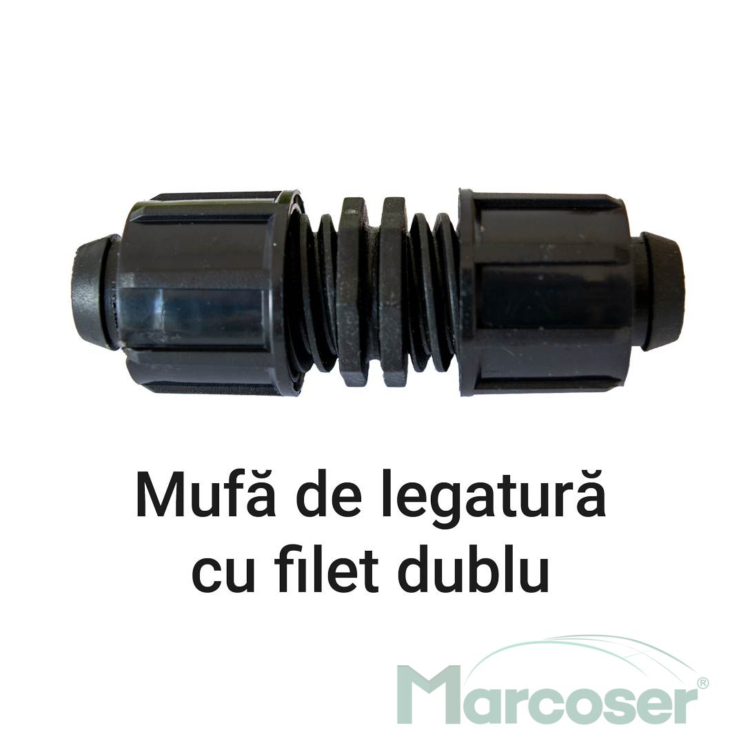 3. Mufa de legatura este piesa utilizata pentru unirea a doua benzi care fac parte din instalatie de irigare prin picatura. Se utilizeaza atunci cand se doreste marirea randului irigat sau in cele mai multe cazuri atunci cand instalatie este deteriorata din diverse motive (taiate, zgaraiate, muscate de coropisnite sau alte animale, etc).