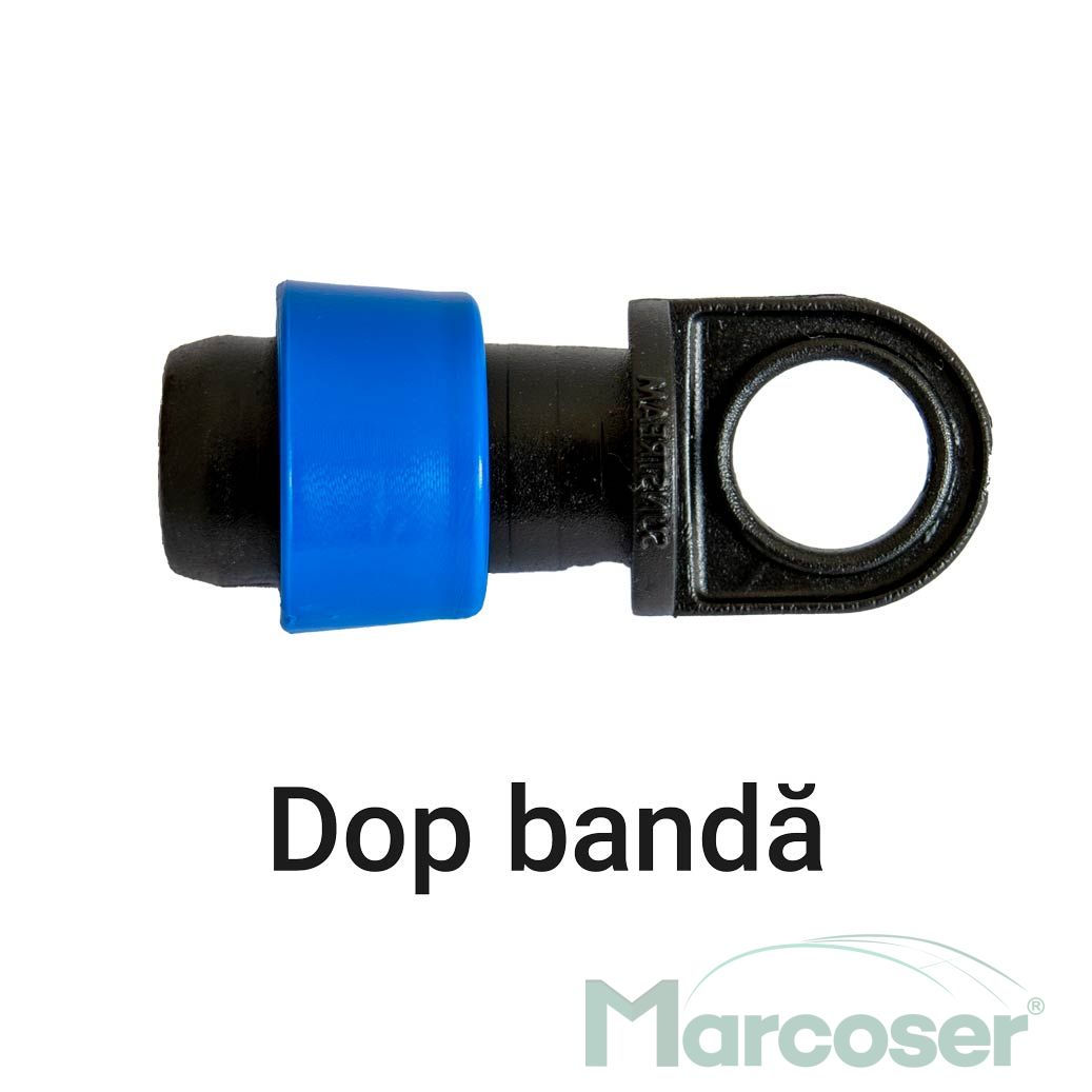 4. Dopul pentru banda este piesa montata la capatul liber al benzii de irigare prin picurare pentru a impiedica curgerea apei. Montarea dopului cu inel la instalatiile prin picurare de tip banda prezinta mai multe avantaje: montarea foarte usoara in comparatie cu alte tipuri de dopuri cu filet, cu cat banda este mai intinsa cu atat dopul este mai bine prins, se desface foarte usor permitand golirea benzii de nisip si alte impuritati si nu in ultimul rand este mai ieftin decat cel cu filet.