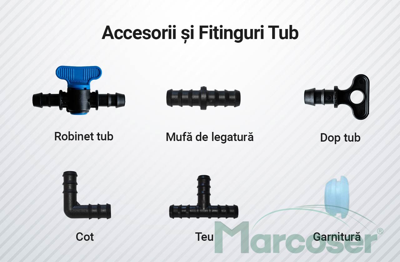 Pentru montarea sistemelor de irigare prin picurare marcoser.ro va pune la dispozitie o gama variata de accesorii si fitinguri pentru tubul de irigare la cele mai avantajoase preturi.