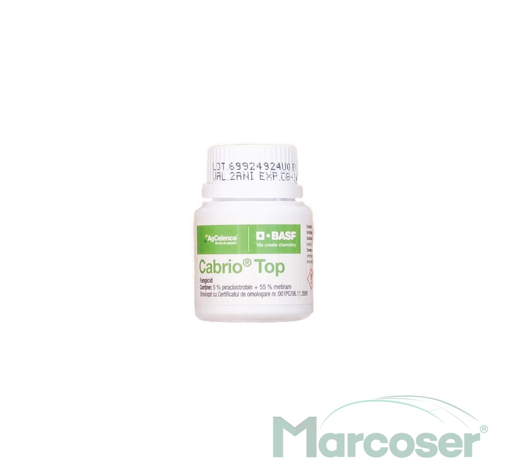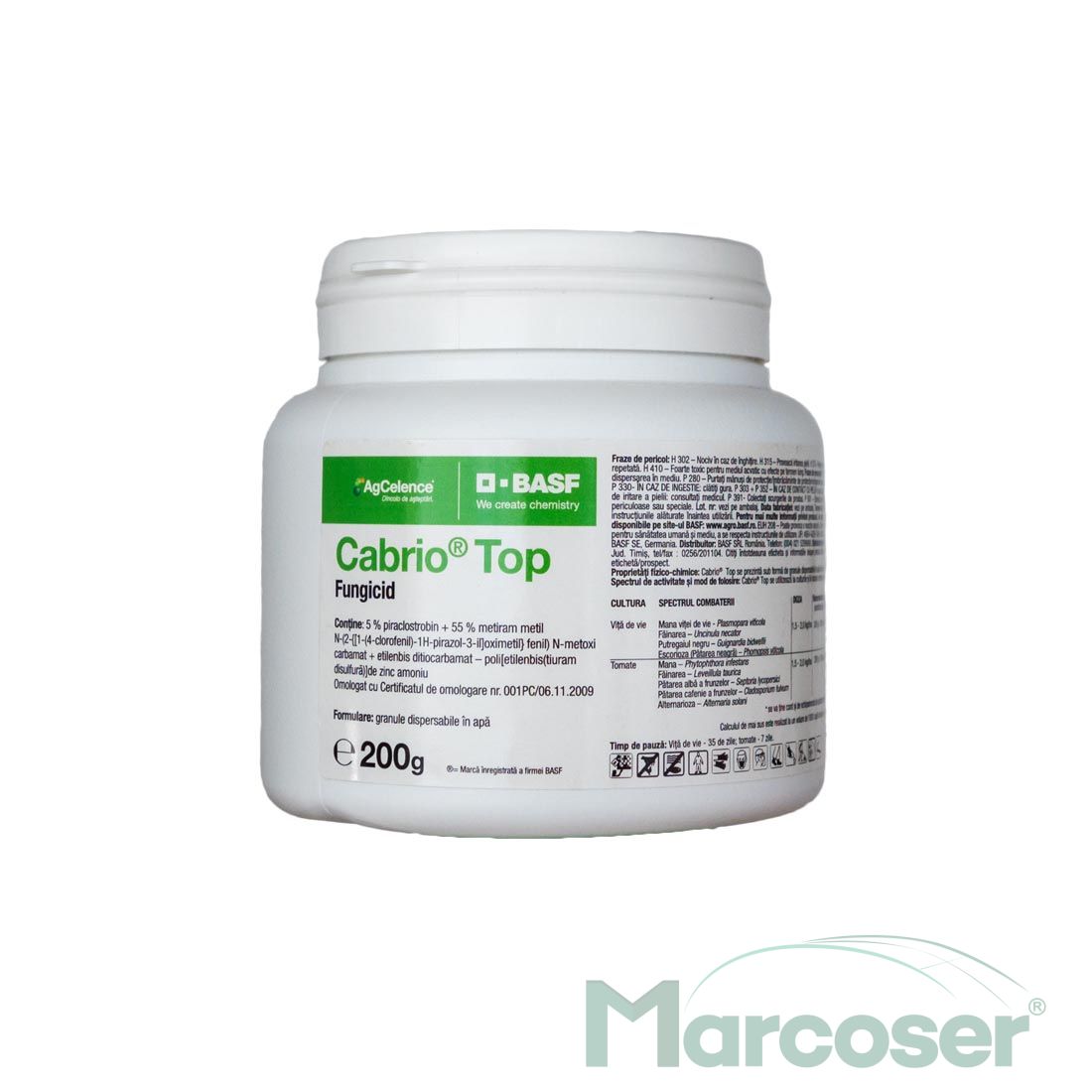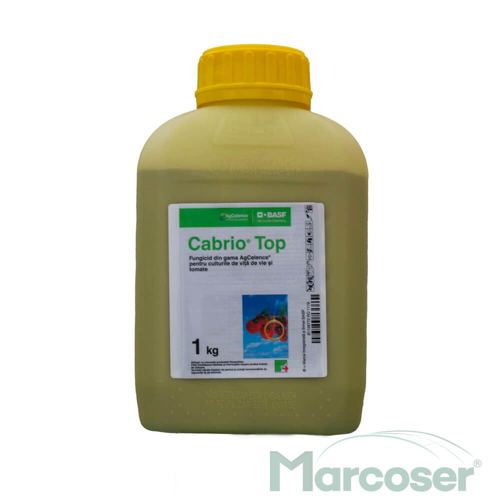 Cabrio Top este un fungicid cu doua substante active, pentru combaterea bolilor la vita de vie si tomate. Acesta asigura o protectie de încredere si uniforma a masei vegetative datorita miscarii translaminare si a sistemiei locale a substantei active piraclostrobin. Are are o puternica actiune preventiva, inhiband mobilitatea si germinarea zoosporilor.