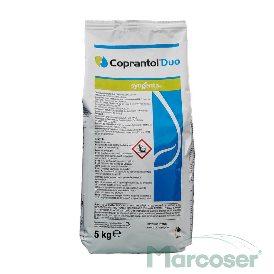 Coprantol Duo este un fungicid de contact pe baza de cupru, folosit pentru o gama larga de culturi horticole, cartof, hamei, si plante ornamentale.