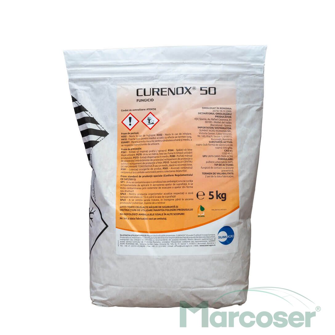 Curenox 50 este un fungicid si bactericid de contact cu actiune preventiva, avand un spectru larg de actiune.