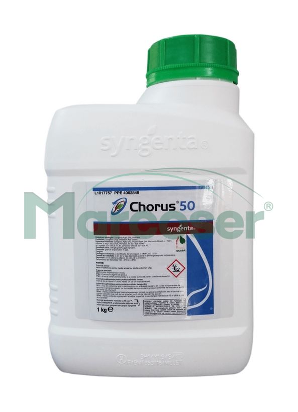 Chorus 50 este un fungicid penetrant sistemic care inhiba biosinteza aminoacizilor esentiali (metionina). Nu interfereaza in biosinteza ergosterolilor precum triazoli.