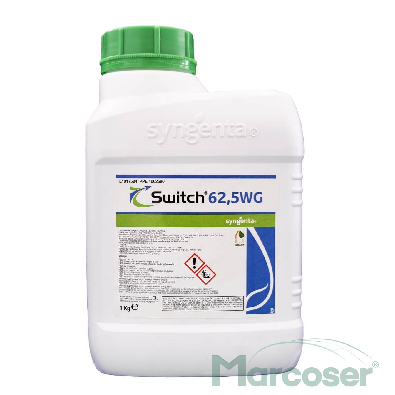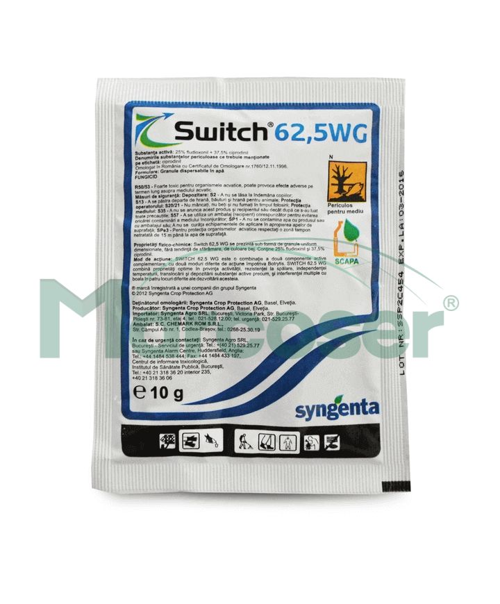 Fungicidul Switch 62,5WG este o combinatie unica de substante active, fiecare dintre ele avand ca tinta putregaiul cenusiu si alte boli importante in culturile de vita de vie, pomi si legume. Are dubla actiune, sistemica si de contact si prezinta risc scazut de aparitie a rezistentei.