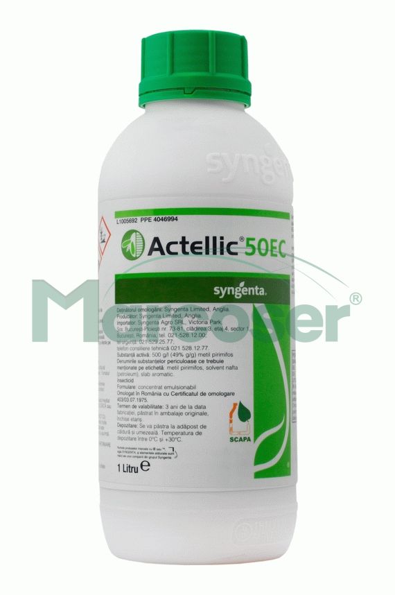 Vezi descriereActellic 50 EC este un insecticid pentru combaterea daunatorilor de depozite ce contine metil pirimifos, cu o puternica actiune de contact, de ingestie si fumiganta, in depozit.