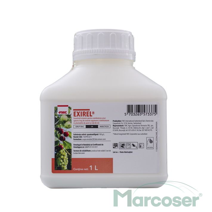 Vezi descriereExirel este un insecticid cu actiune sistemica si translaminara ce combaterea unui spectru larg de insecte din plantatiile de pomi si vita de vie