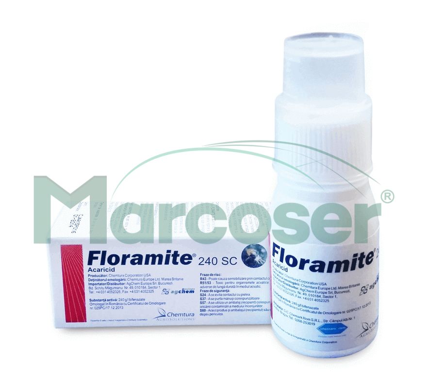 Floramite 240 SC controleaza toate formele mobile ale acarienilor, avand si efect ovicid asupra acestora. Produsul are efect letal prin actiunea de contact, urmat de o lunga activitate reziduala asupra daunatorilor. La 3 ore dupa aplicare, acarienii inceteaza sa se mai hraneasca, iar efectul letal se instaleaza in decurs de 3-4 zile