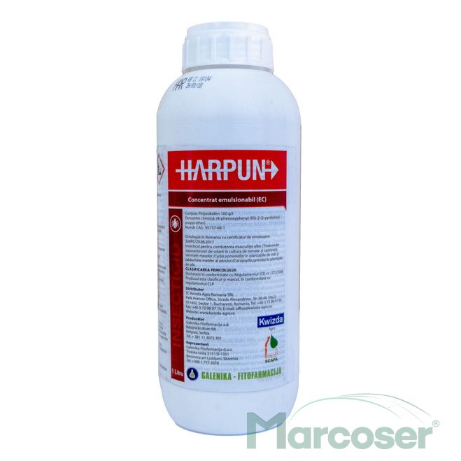 Harpun este un insecticid pentru combaterea musculitei albe de solarii in cultura de tomate si castraveti, viermele merelor in plantatiile de mar si paduchele melifer al parului in plantatiile de par.