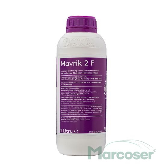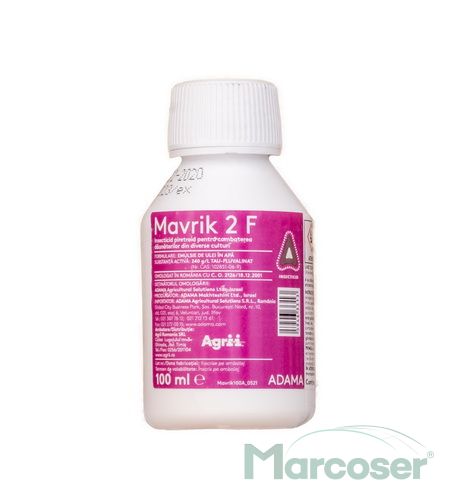 Mavrik 2F - Insecticid piretroid de ultima generatie pentru combaterea daunatorilor la cartof, grau, cereale, legume, pomi fructiferi, rapita, vita de vie. Asupra organismelor tinta actioneaza atat prin contact cat si prin ingestie, avand si efect rezidual de lunga durata si un efect de knock-down foarte evident.