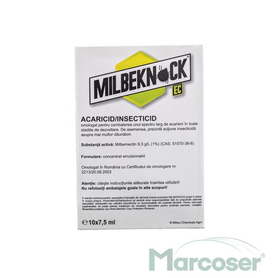 Milbeknock este un insecto-acaricid care imbina conceptul de protectie a culturilor, a mediului si a omului si are actiune translaminara si nu este afectat de ploile survenite la cateva ore dupa aplicare. Insectele care intra in contact cu produsul mor fara a prezenta nicio miscare sau spasm.