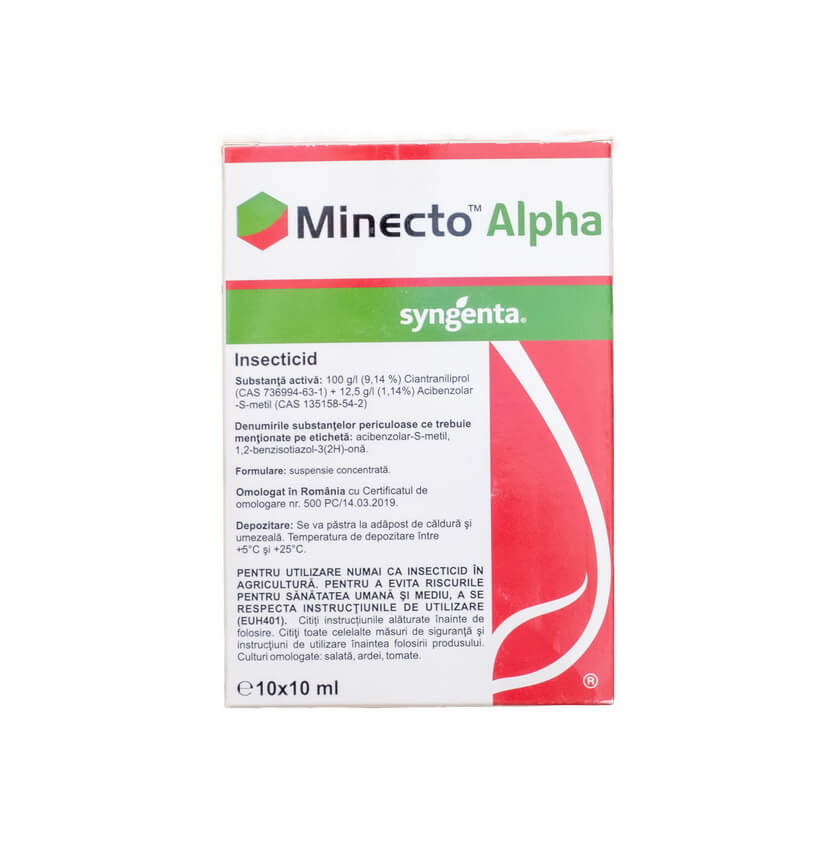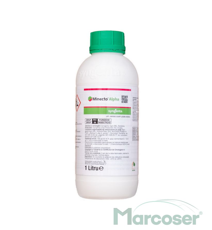 Minecto Alpha este este un insecticid cu mod de actiune sistemic, conceput atat pentru aplicare foliara cat si pentru utilizarea prin instalatia de irigare prin irigare, avand un spectru larg de combatere intr-un numar mare de culturi horticole.