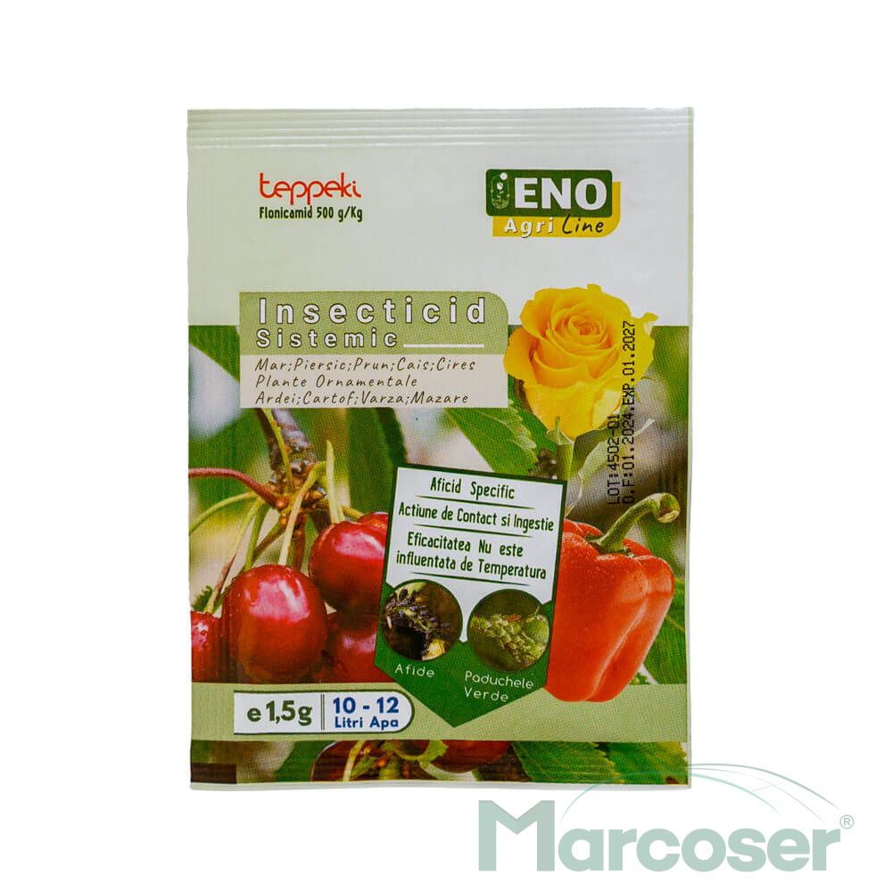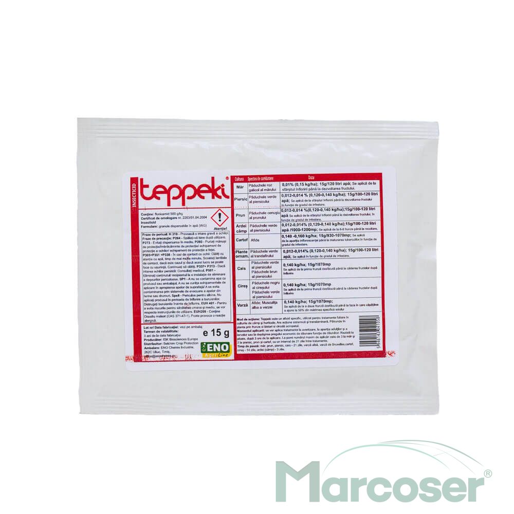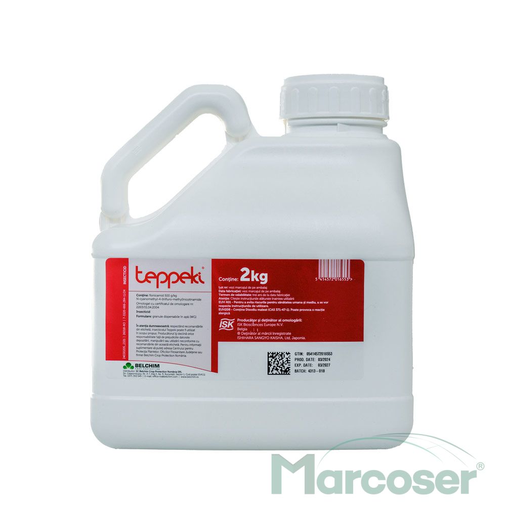 Vezi descriereTeppeki este un aficid sistemic cu o eficacitate dovedita împotriva afidelor, indiferent de stadiul de dezvoltare al acestora. Acesta se aplica la avertizare, prin stropiri, pentru prevenirea si combaterea afidelor din plantatiile pomicole, din culturile de ardei, plante ornamentale, cartof.
