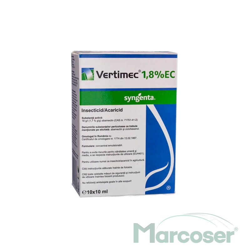 Vezi descriereVertimec patrunde rapid în planta si formeaza un depozit activ de produs în mezofilul frunzelor, depozit ce asigura controlul daunatorilor pe o perioada lunga de timp. Actioneaza asupra daunatorilor, in principal prin ingestie, distrugand adultii si larvele care se hranesc cu partile tratate ale plantei.