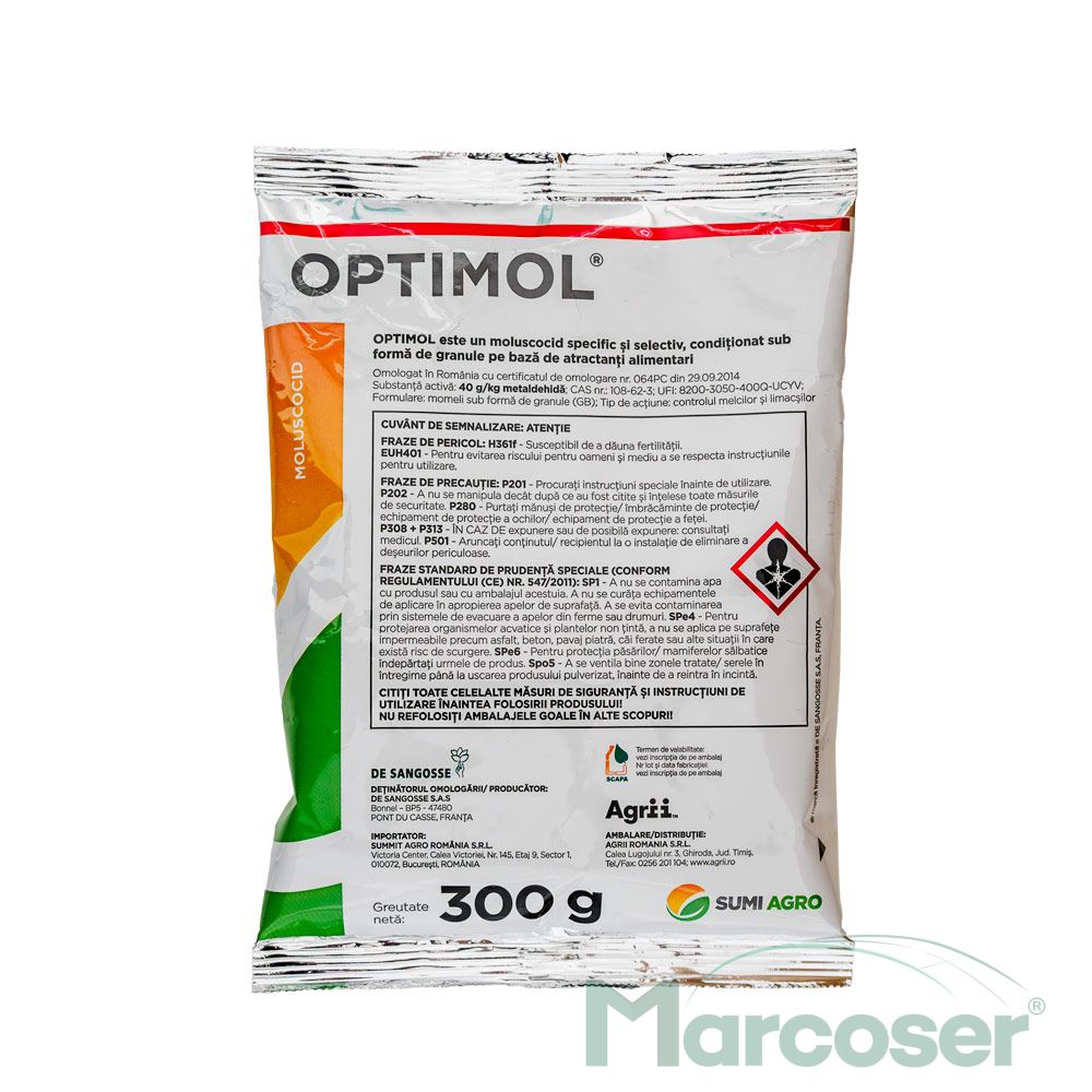 OPTIMOL este un moluscocid unic pe piaţa datorita formularii umede şi modului specific şi selectiv de acţiune. Acesta actioneaza prin otravire prin ingestie, anesteziere, imobilizare si deshidratare prin secretie in exces de mucus.