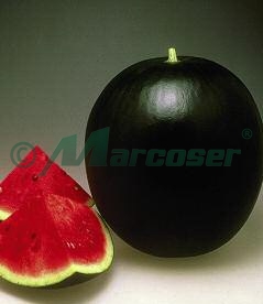 Fructele au o suprafata neteda, de culoare verde foarte inchis, dimensiunile acestora sunt de aproximativ 28x30 cm, cu o greutate de 6 - 8 kg. Pulpa este crocanta, foarte dulce, de culoare rosu intens si prezinta seminte putine de dimensiuni mici.