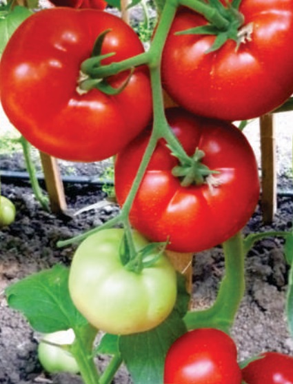 Hibrid de tomate cu crestere nedeterminata, pentru cultura de primavara si ciclul lung, in sere si solarii, cu fructe uniforme, de culoare rosu inchis, prezinta fermitate medie (220-250 grame).
