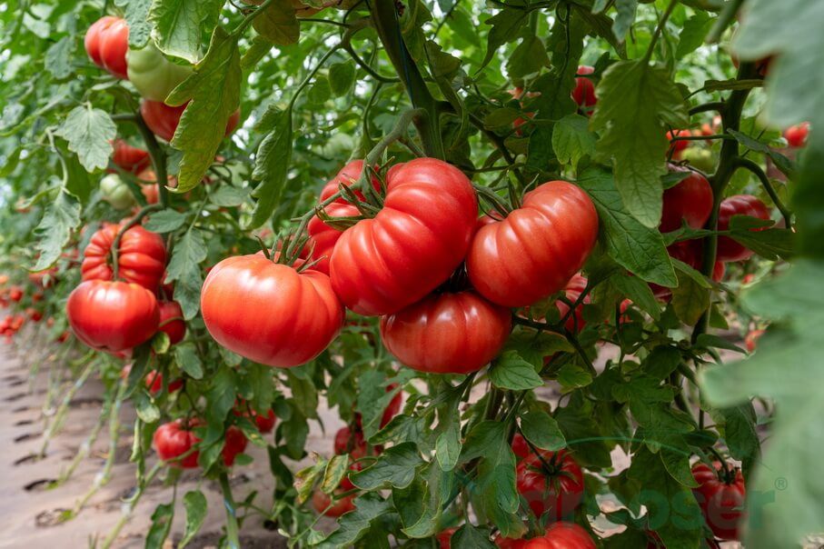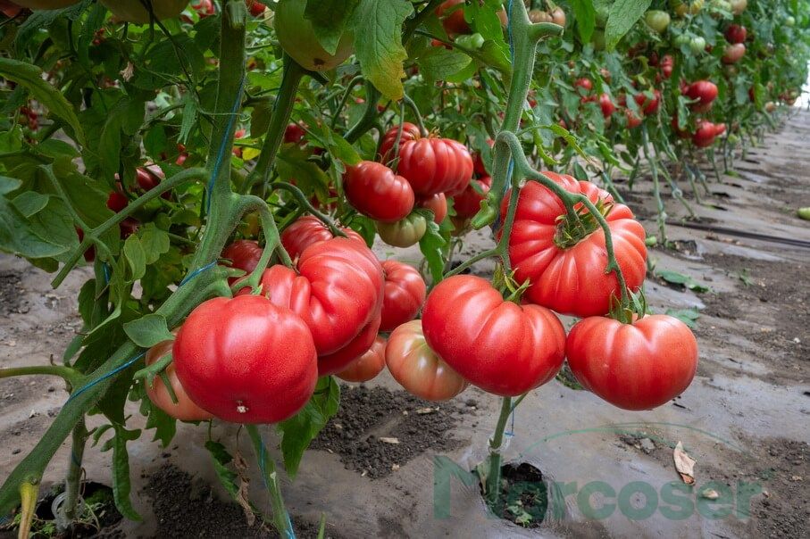 Rosamei F1 este un hibrid de tomate roz foarte productiv, cu planta de marime medie, internoduri scurte si fructe striate care cantaresc 220-240 grame