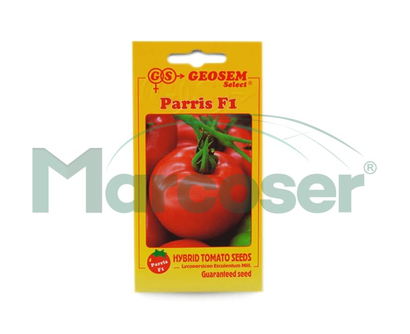 Parris F1 este un hibrid timpuriu, cu internodii scurte, pentru cultivare in spatii protejate si in aer liber. Are crestere semideterminata si produce 5-6 ciorchini pe planta. Fructele (180-200 de grame) sunt ferme si intens colorate in rosu, foarte carnoase si tari.