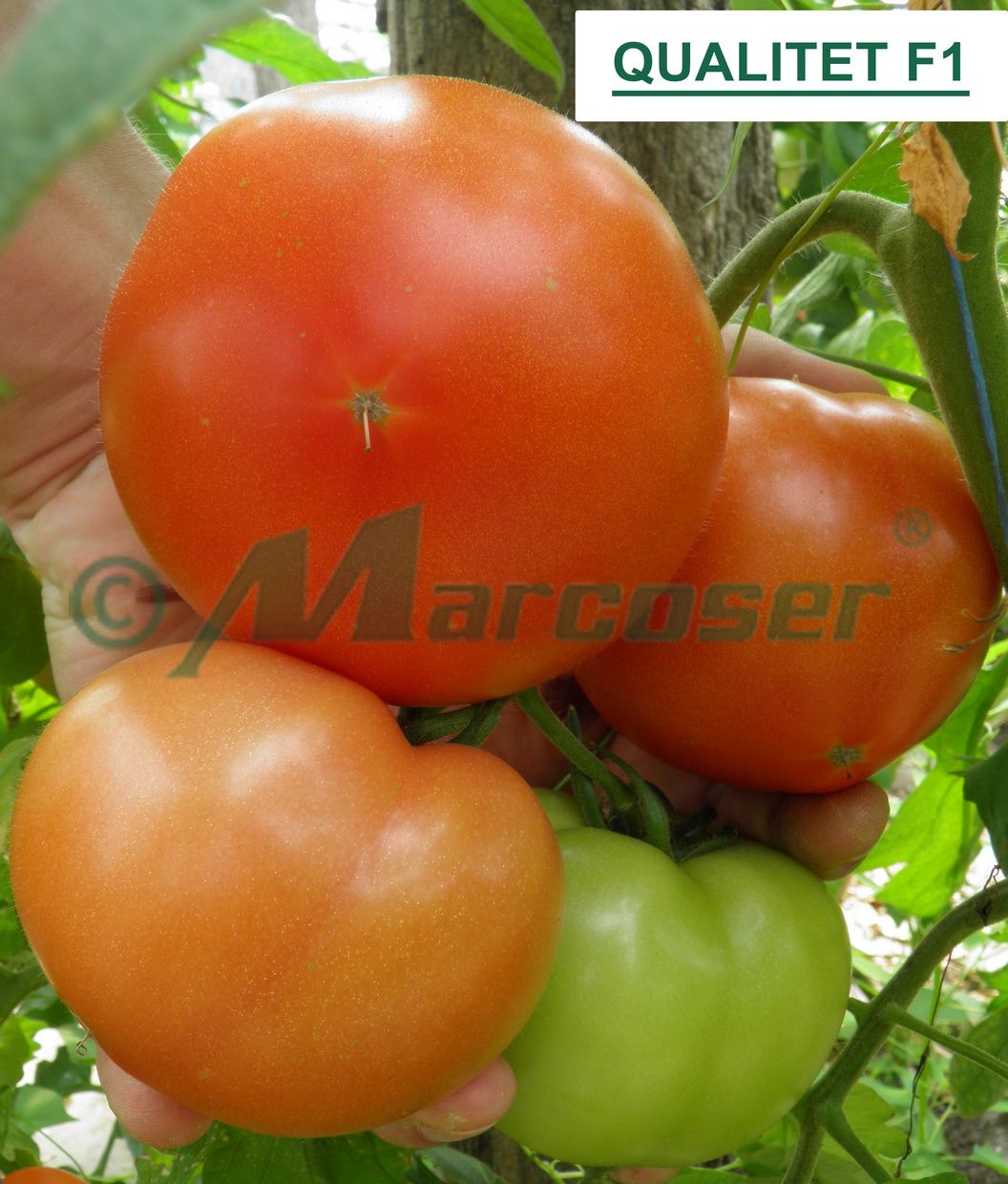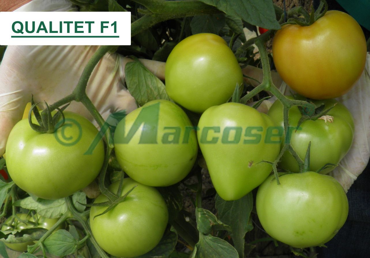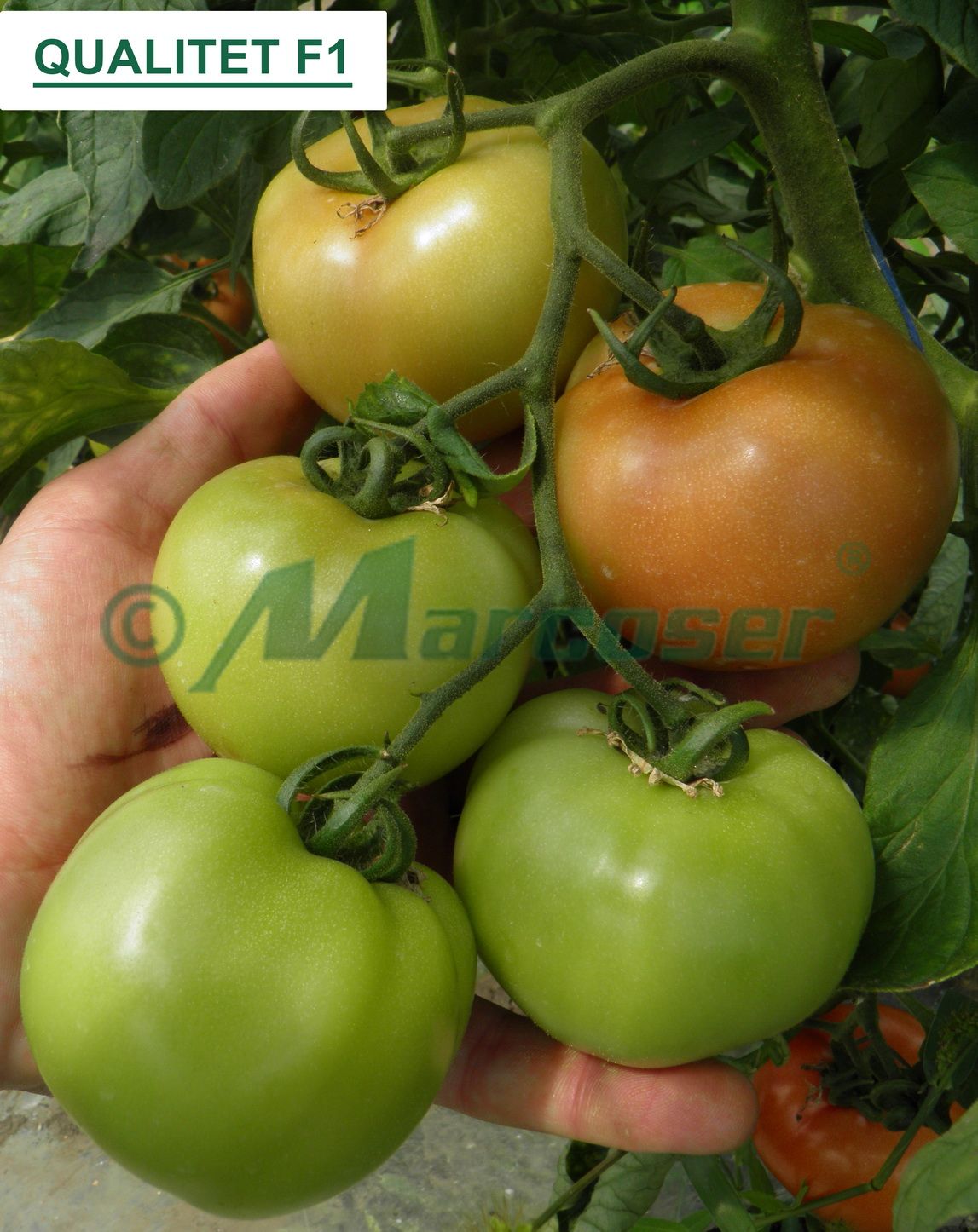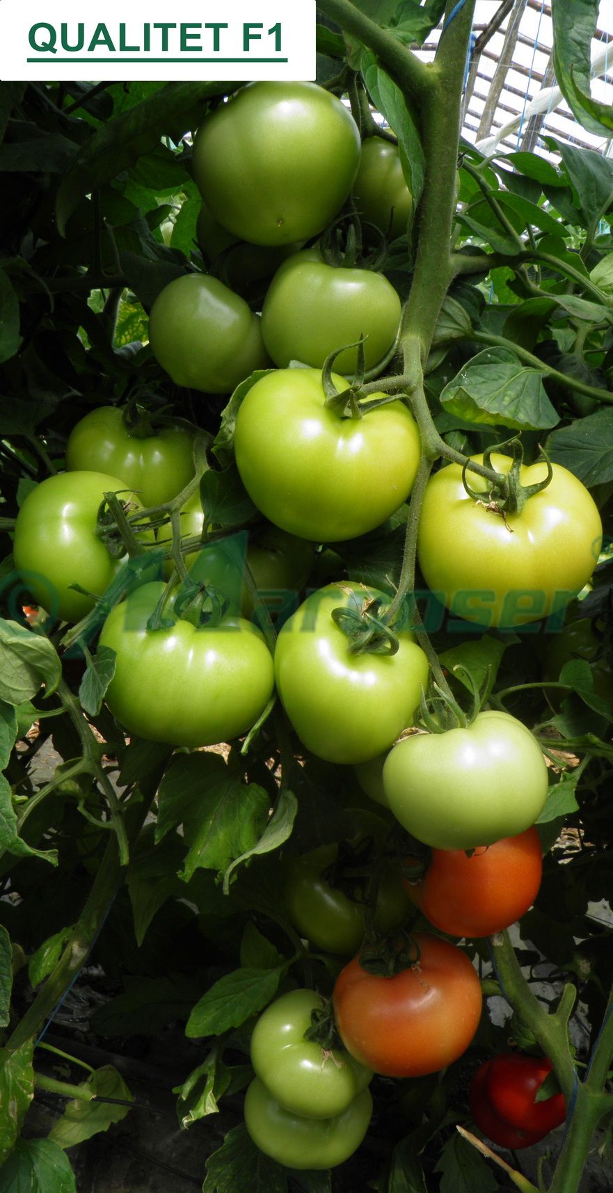 Qualitet F1 este un hibrid de tomate cu crestere semideterminata, usor de cultivat in diferite conditii tehnologice. Plantele sunt puternice, manifesta in general un bun echilibru vegetativ si generativ si se comporta excelent in conditii de stres. Formeaza fructe mari (180 grame), uniforme si ferme.